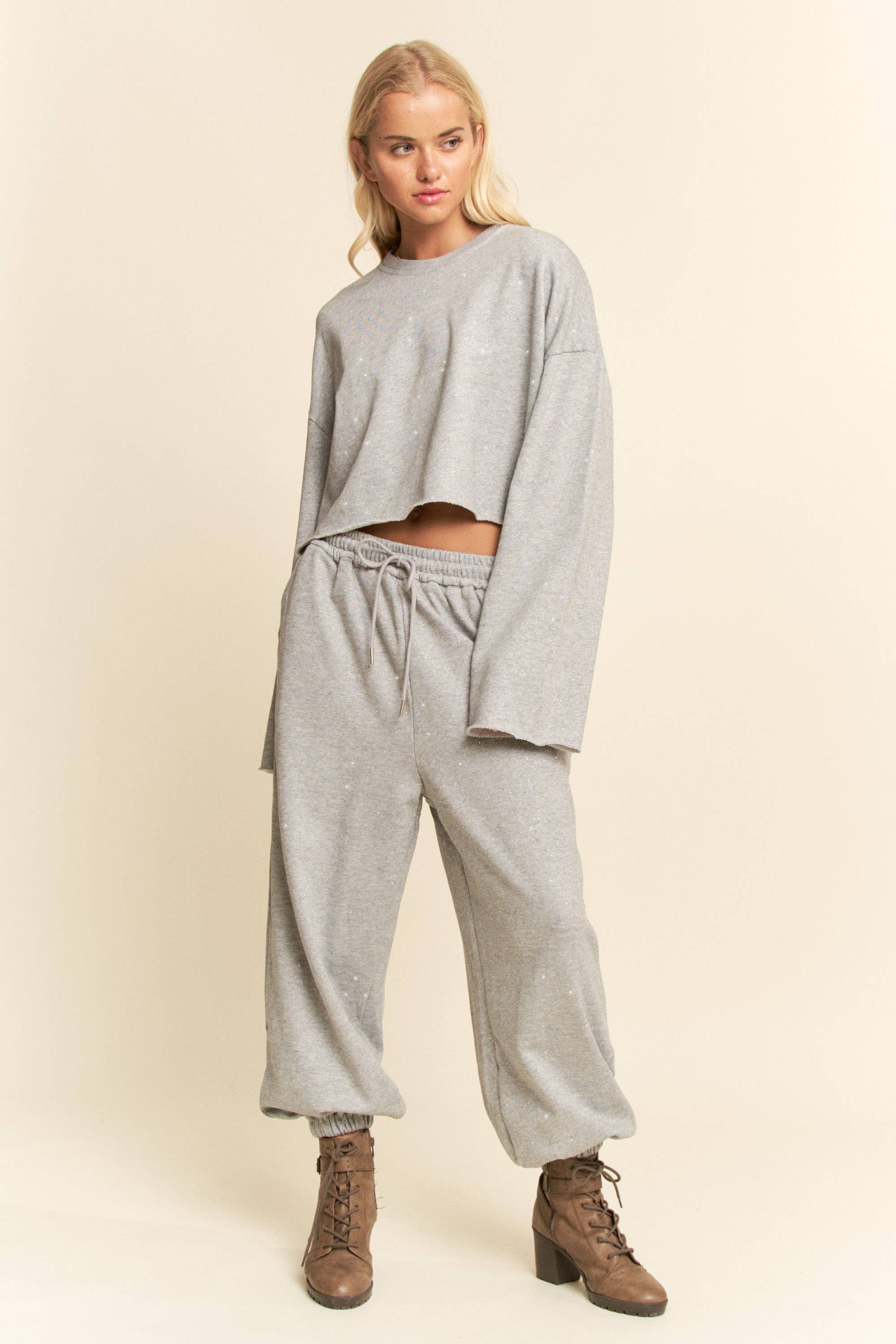 Cozy meets chic in the Rhinestones Speckled Fleece Lounge Set. (Bottoms sold separate)