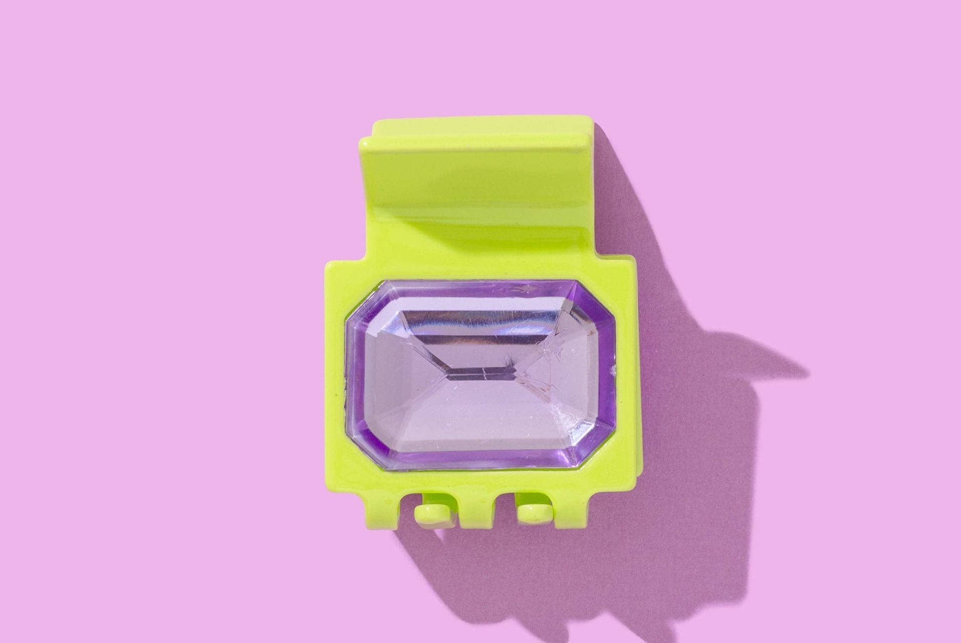 Elevate your store with our top-selling claw clips! Perfect for everyday wear, these fun hair accessories come in a range of sizes, colors, and designs to suit every style. Details * Size: 1.96" tall x 1.77" wide * Green clip * Purple emerald-shape gemstone on each side of clip * Imported