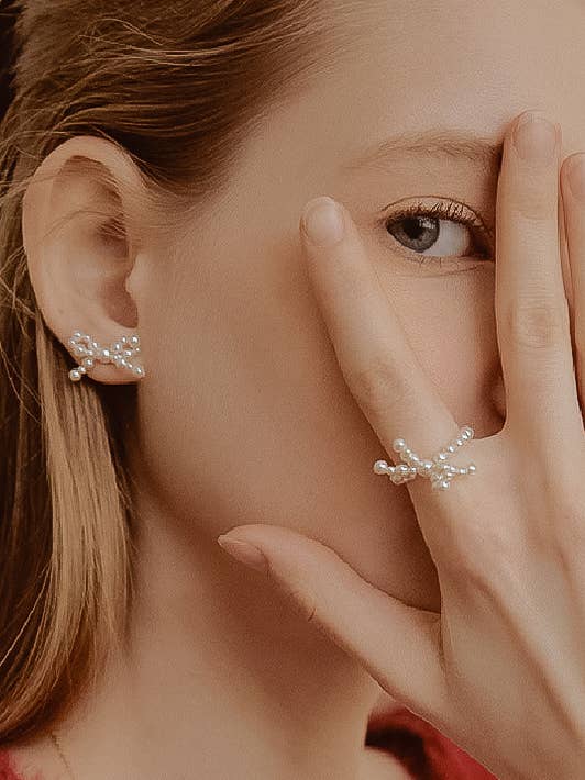 Pépin 18K Gold Bow Pearl Earring, Ring