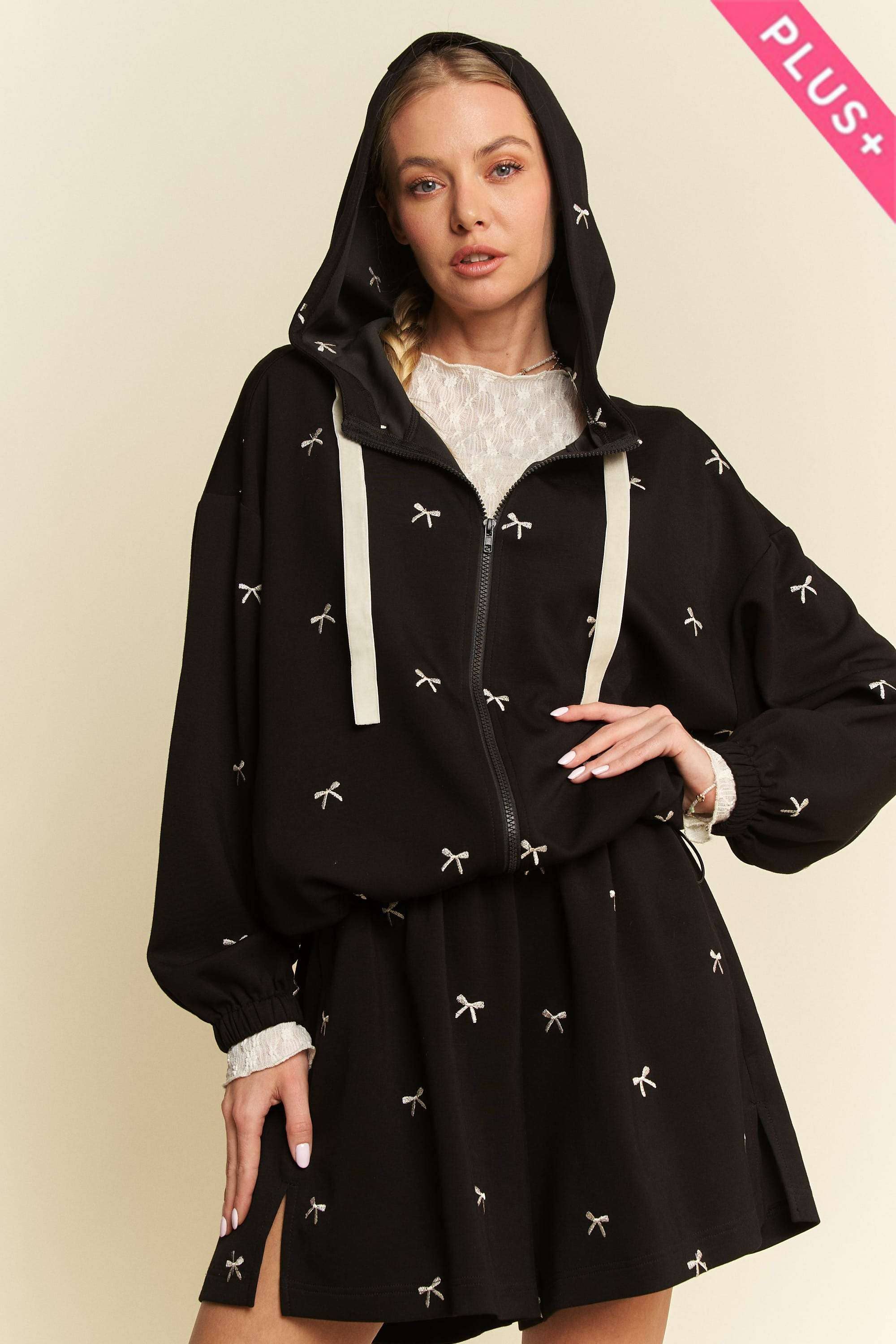 Ribbon Embroidery Elastic Waist Sweat Shorts (Plus)