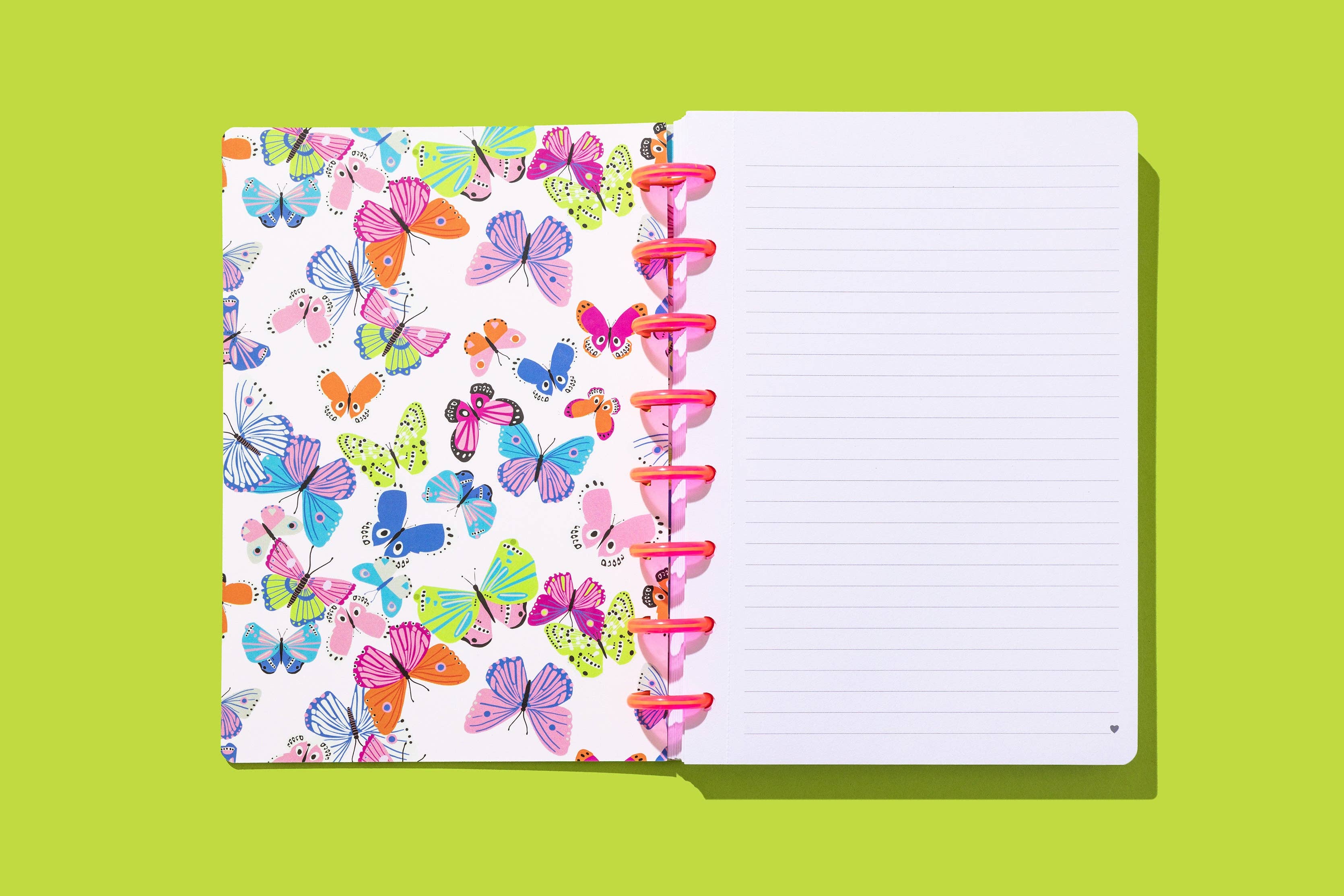 This notebook includes the motivational phrase "You Got This" on the durable, hard cover. Each page is lined and has perforations for easy removal. The large disc spiral binding is hot pink, and the inside cover has a cute butterfly print. Add a pen and tie them with a ribbon to create unique gift bundles. Whether given as a gift for graduation or included in a spring Easter basket, this notebook is sure to brighten someone's day.