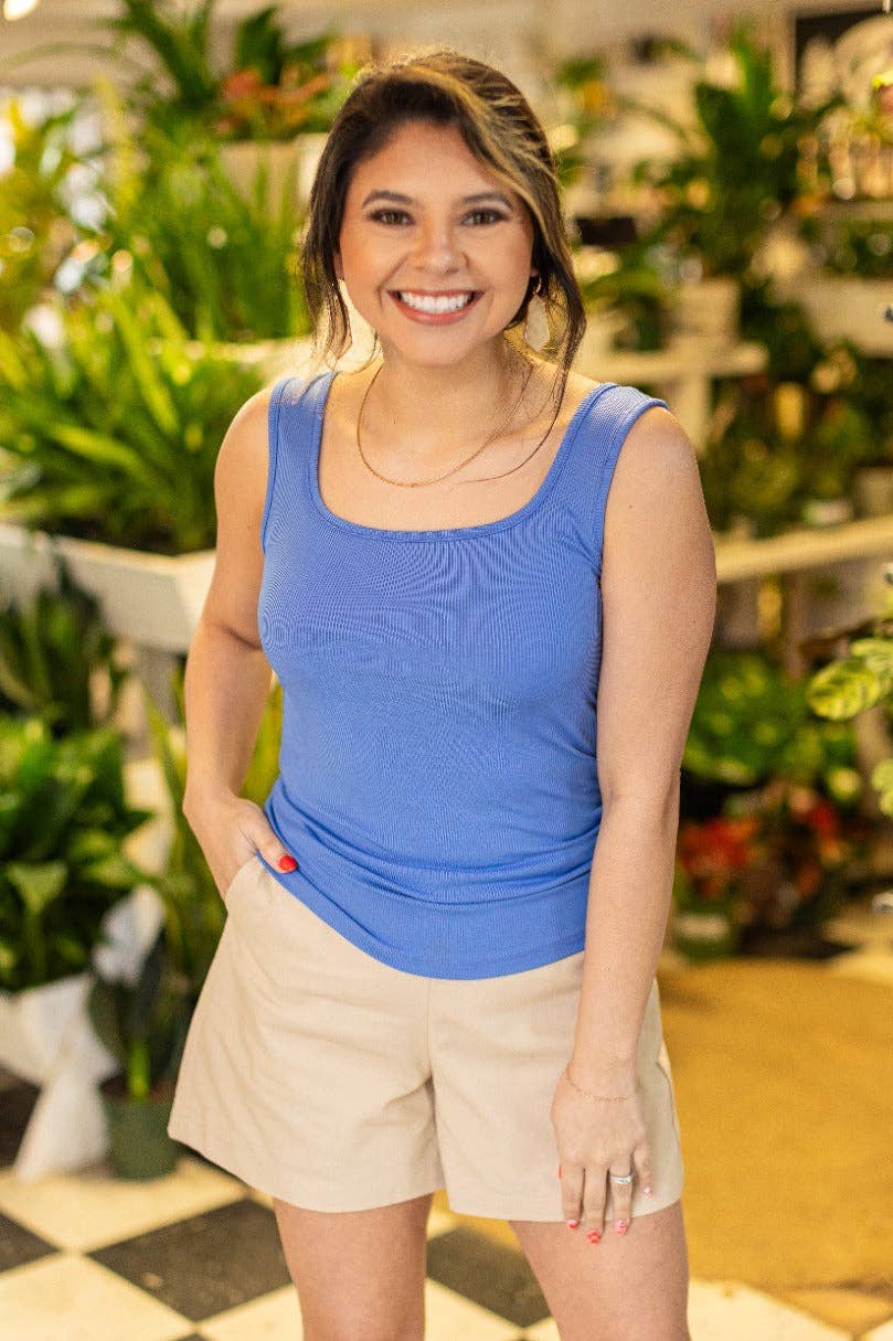 This rib knit tank top features a structured square neckline and a relaxed, mom crop fit that sits comfortably without clinging. Made with high-stretch fabric, it moves with the body while offering gentle support. The unlined finish keeps it lightweight and breathable—perfect for everyday ease with a soft, body-flattering silhouette.