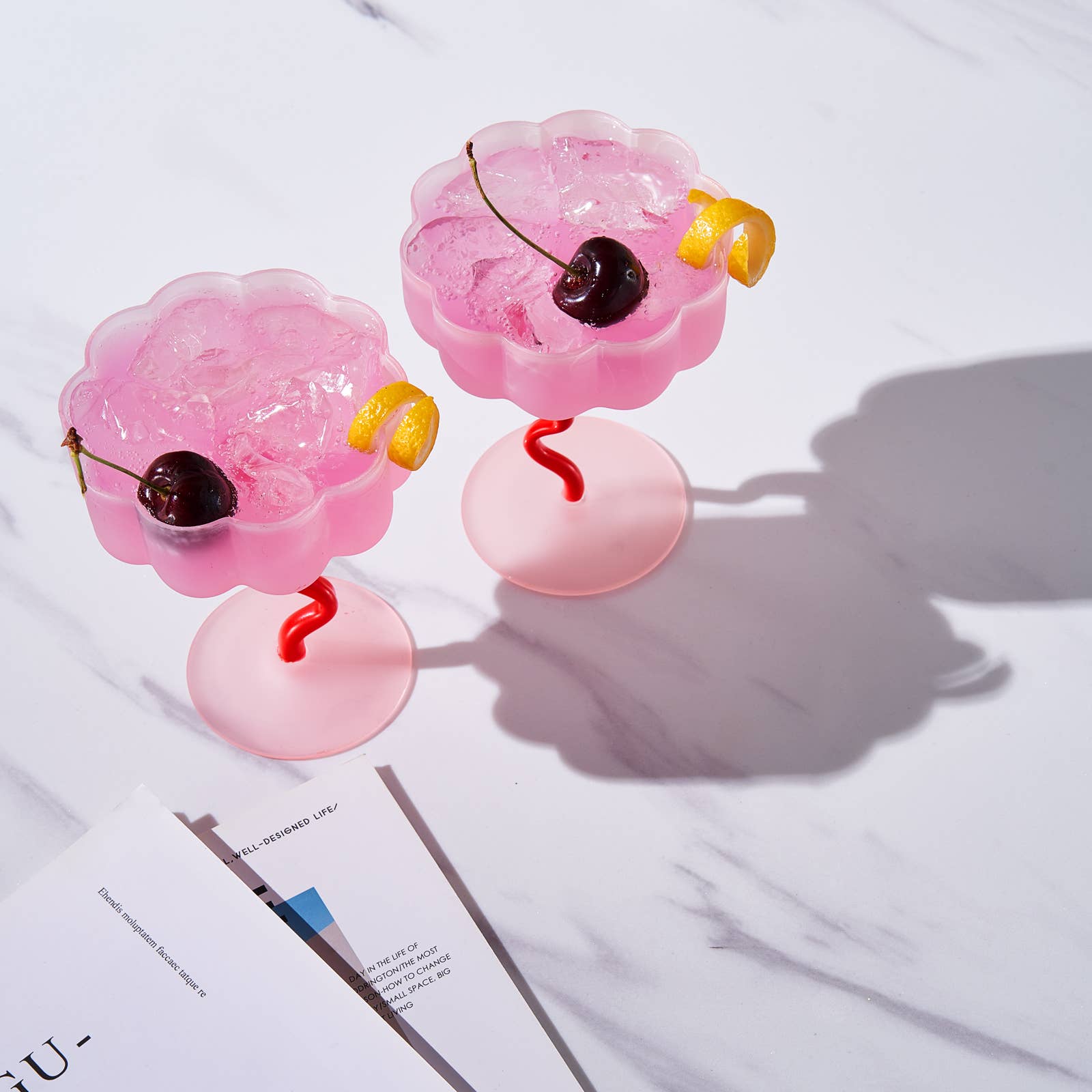 Unique Coupe Cocktail Glassware, Set of 2, Frosted Pink/Red